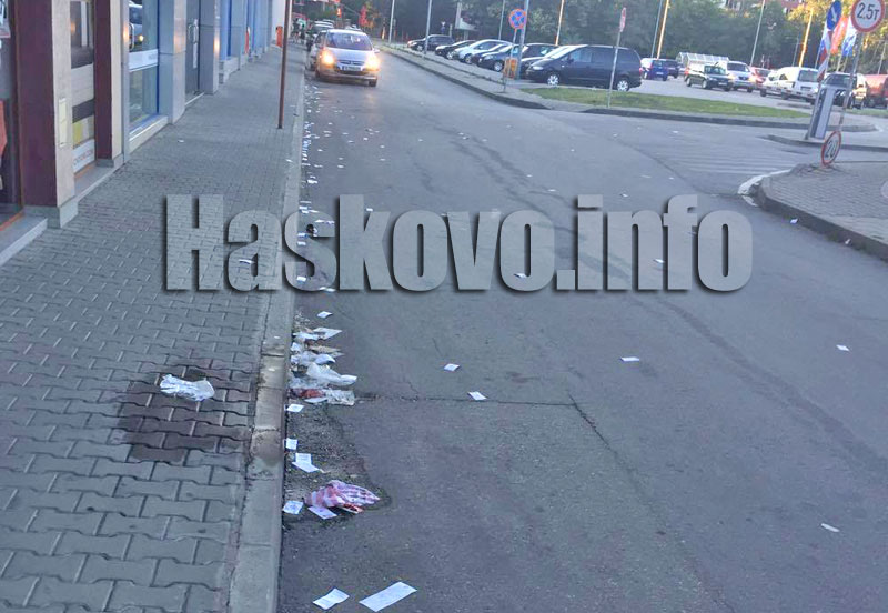 Улицата до паркинга е осеяна с касови бележки, торбички и боклуци. Според хората тази гледка се повтаря всеки ден.