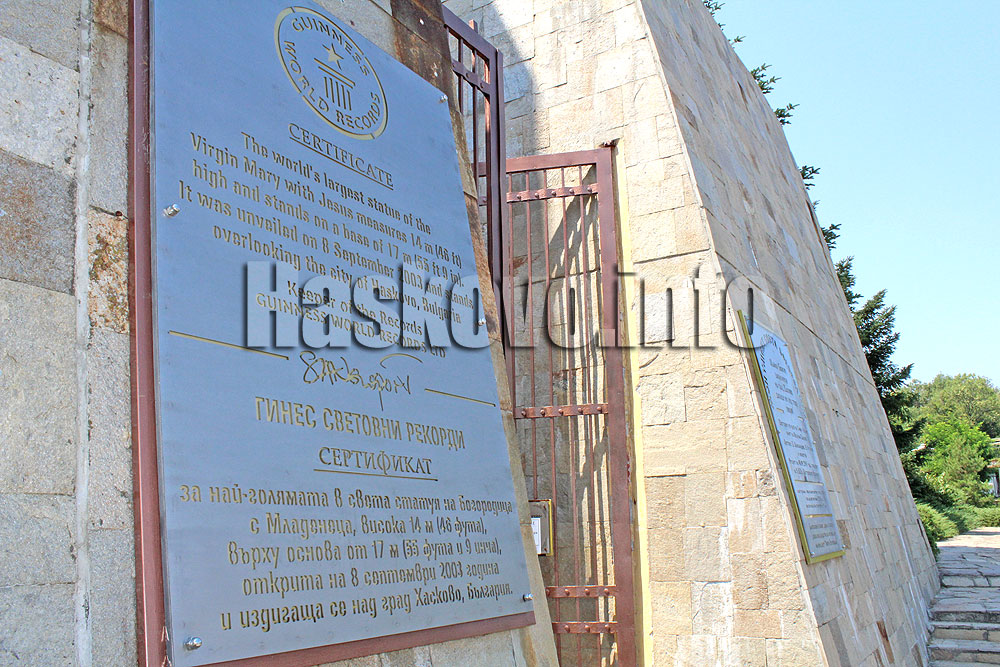 Надписът със сертификата от Гинес световни рекорди отново е поставен на монумента на Света Богородица в Хасково.