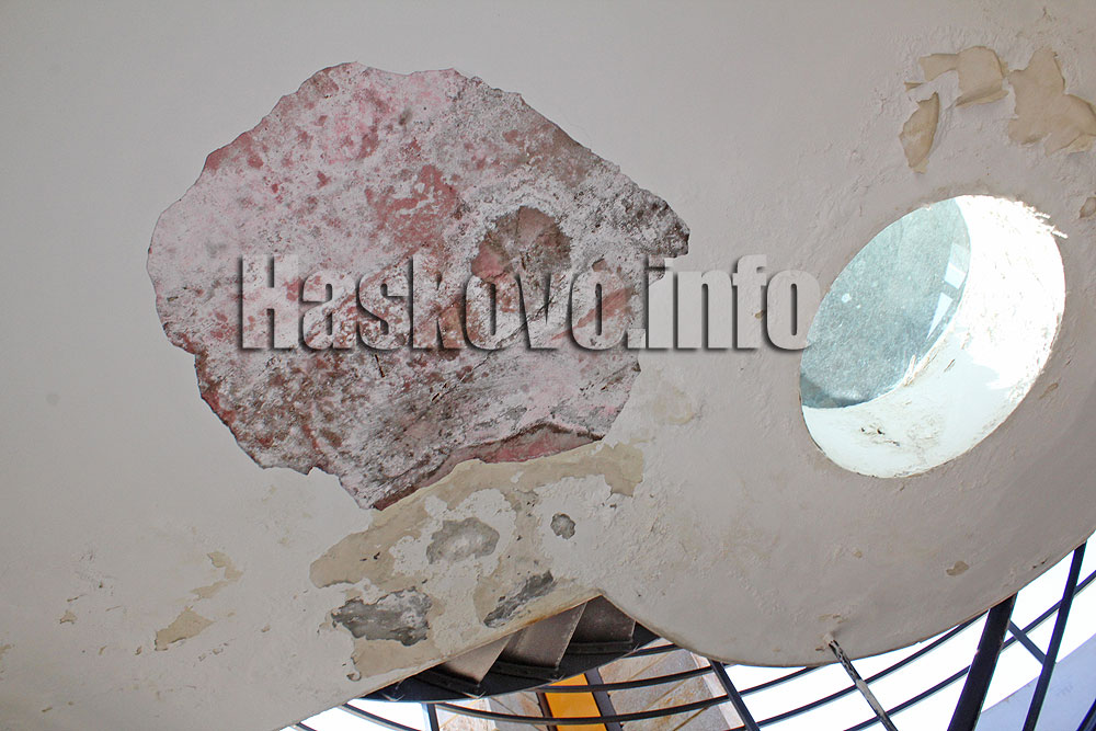 Пада мазилката над стълбите в камбанарията на Ямача в Хасково. Голямо парче се е отлепило от тавана на първото ниво.