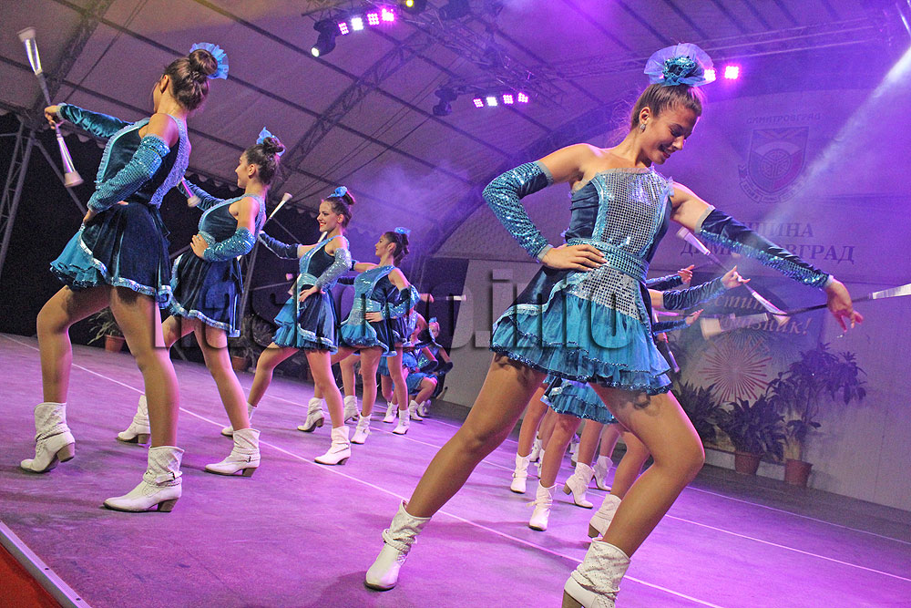 Празничната програма за 70-годишнината на Димитровград завърши с музикален спектакъл, в който на площад „България“ се представиха мажоретни състави и духови оркестри.