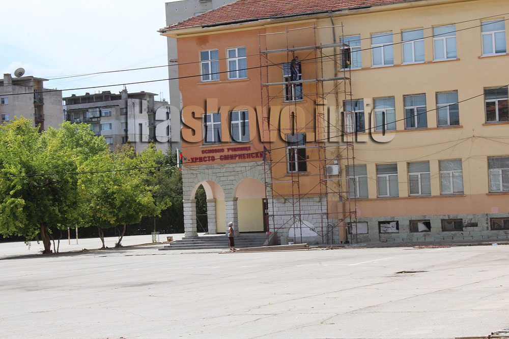 По фасадата на хасковското ОУ „Христо Смирненски“ се правят кърпежи, които трябва да приключат до 7 септември, допълниха от РУО.