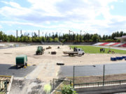 Пред завършване е и лекоатлетическата писта, където предстои полагането на последния втори слой.