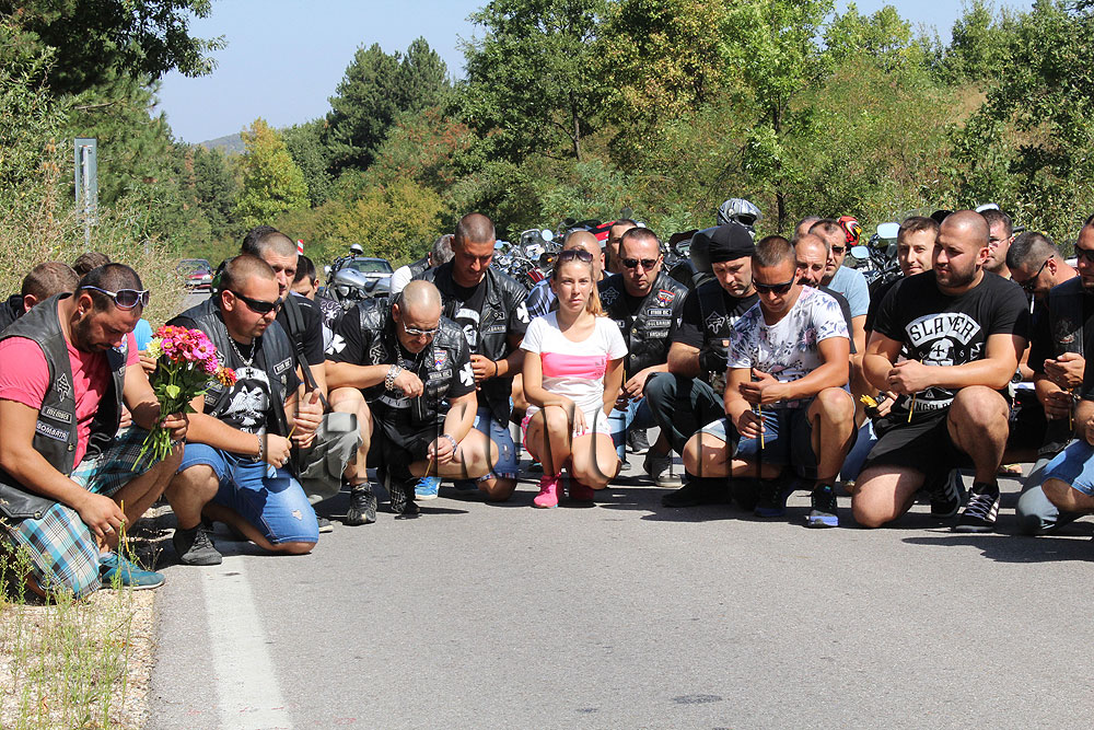 Мотористите паднха на колене в памет на момичетата, след което поднесоха цветя и запалиха свещи на лобното им място.