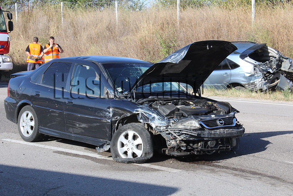 В канавката се озовават хасковски Лексус и благоевградски Сеат. Най-сериозно е пострадал Опел с хасковска регистрация, който е със смазани предница и задница. Лек удар отзад е получил и Шкода с румънска регистрация.