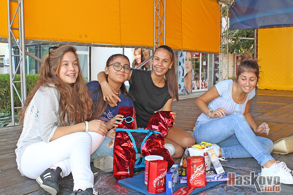 Момичета подготвяха подарък за 15-ия рожден ден на своя приятел Карлос, като събраха погледите на минувачите покрай сцената на площад „Свобода“ в Хасково.