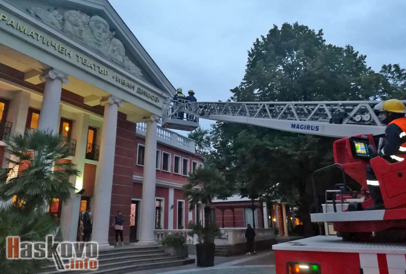 Пожарна бе извикана за свалянето на оплетен и загинал гълъб над входа на хасковския театър „Иван Димов“.
