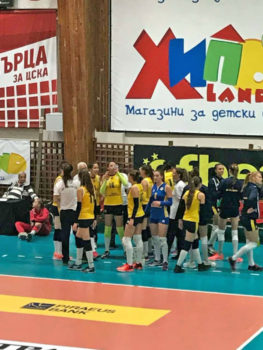 Момичетата на старши треньора Габриела Айшинова бяха равностойни на „червените“ в първия и третия гейм, загубени съответно с 22:25 и 20:25. Във втория гейм домакините се наложиха с 25:14.