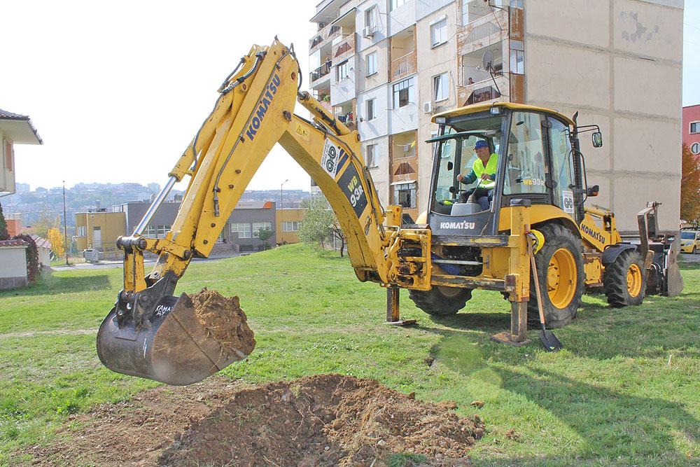 Благоустрояване на междублокови пространства извършва общината по проект одобрен от МРРБ на стойност над 3.7 млн. лв. Първата копка е днес в квартал „Бадема“.