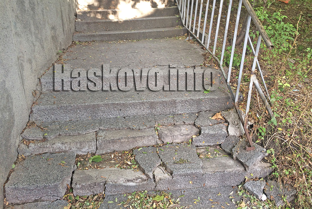 По стълбището има строшени стъпала, а парапетът е срязан. Отделно подпорната стена е напукана. Хасковлии настояват стълбището да бъде укрепено и осветено, за да не се стигне до инциденти.