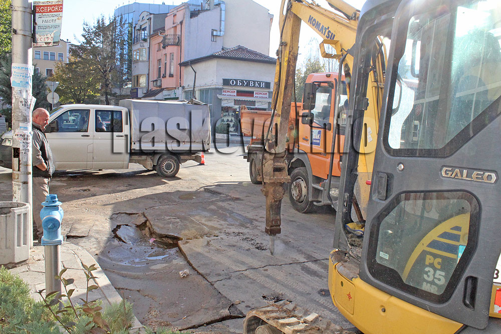 Голяма авария остави центъра на Хасково без вода. Спуканата тръба е до бариерата на общината.