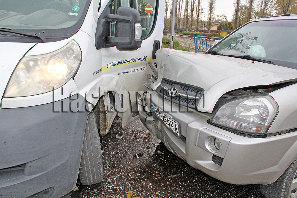 Товарен автомобил „Пежо“ и джип Хюндай катастрофираха на кръстовището до Захарна фабрика в Хасково.