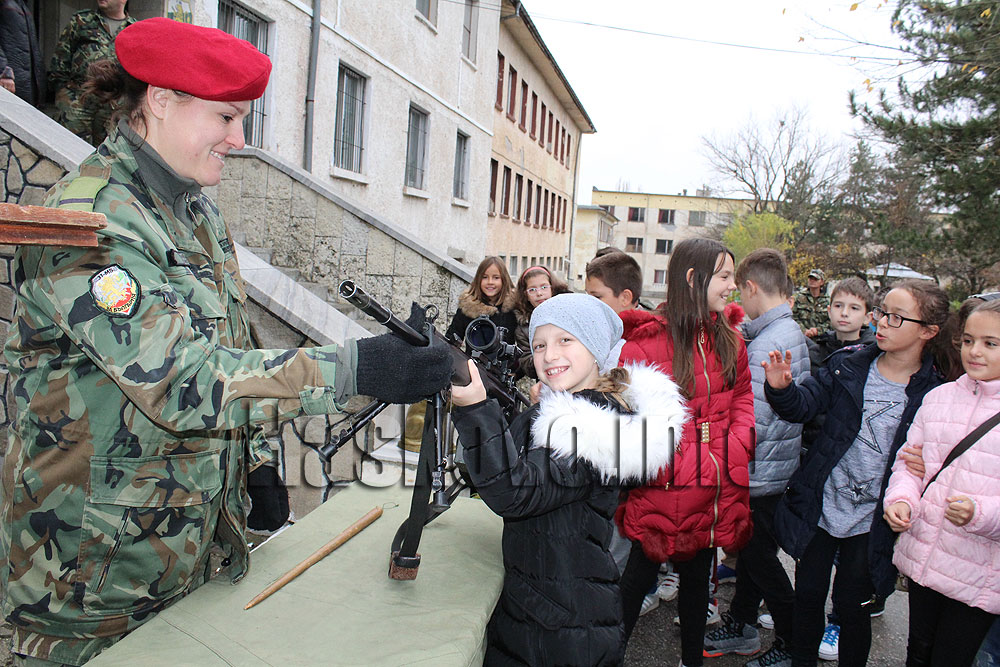 Децата се запознаха отблизо с различни образци въоръжение, техника и екипировка, с които разполагат военнослужещите в Хасково.