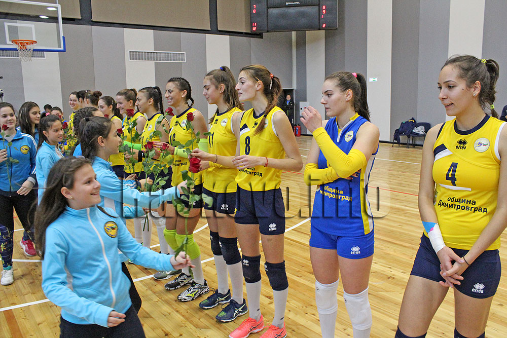 В началото състезателките бяха зарадвани с рози, а многобройната публика в залата подкрепяше момичетата на терана с овации.