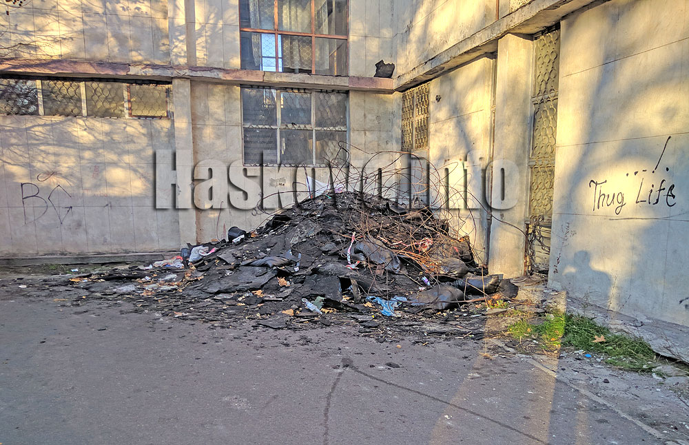 Става въпрос за булевард „Раковски“ 30. „Преди около месец започна ремонт на покрива на сградата и всичко се изхвърли отзад откъм вход Д“, жалват се хората.