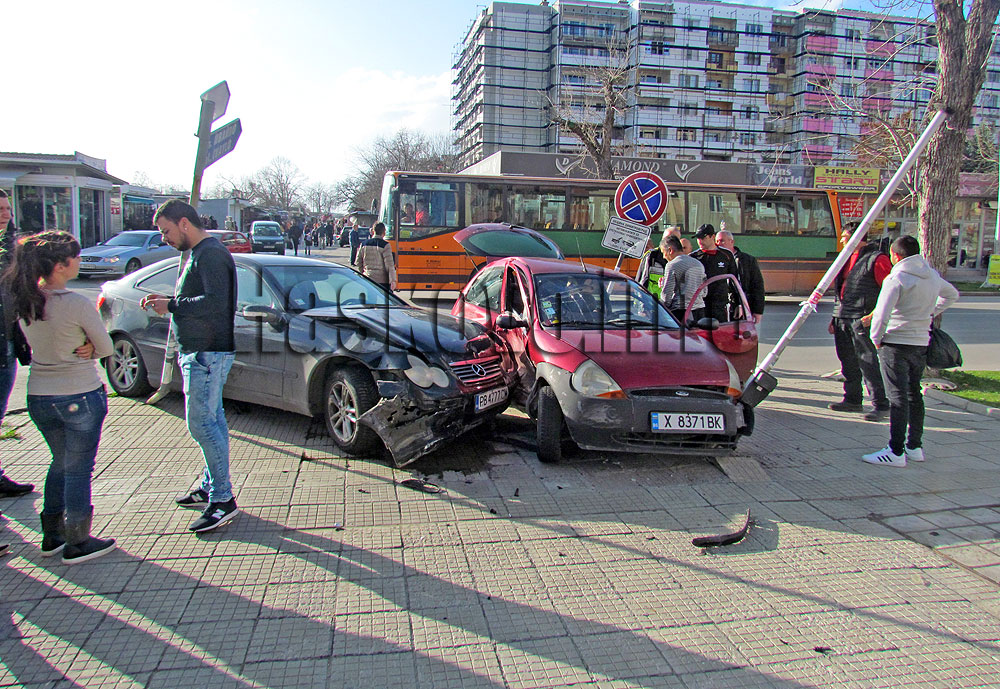 Инцидентът стана около 15 часа, когато Фордът излизал от пазара, отнел е предимството на Мерцедес, движещ се по бул. „Стефан Стамболов“ и двете коли са се сблъскали. От удара автомобилите са се качили на съседния тротоар.