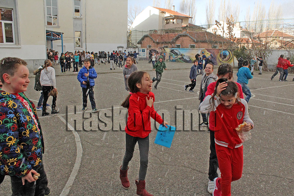 Първият сняг посрещнаха с голяма радост учениците в ОУ „Св. Климент Охридски“, които по това време бяха на двора. Децата викаха „сняг, сняг“, честитяха си и подскачаха от щастие.