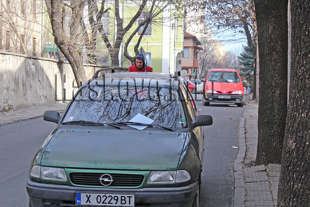 На десетина коли бяха поставени фишове и стикери за неправилно паркиране по улица „Средна гора“ в Хасково.
