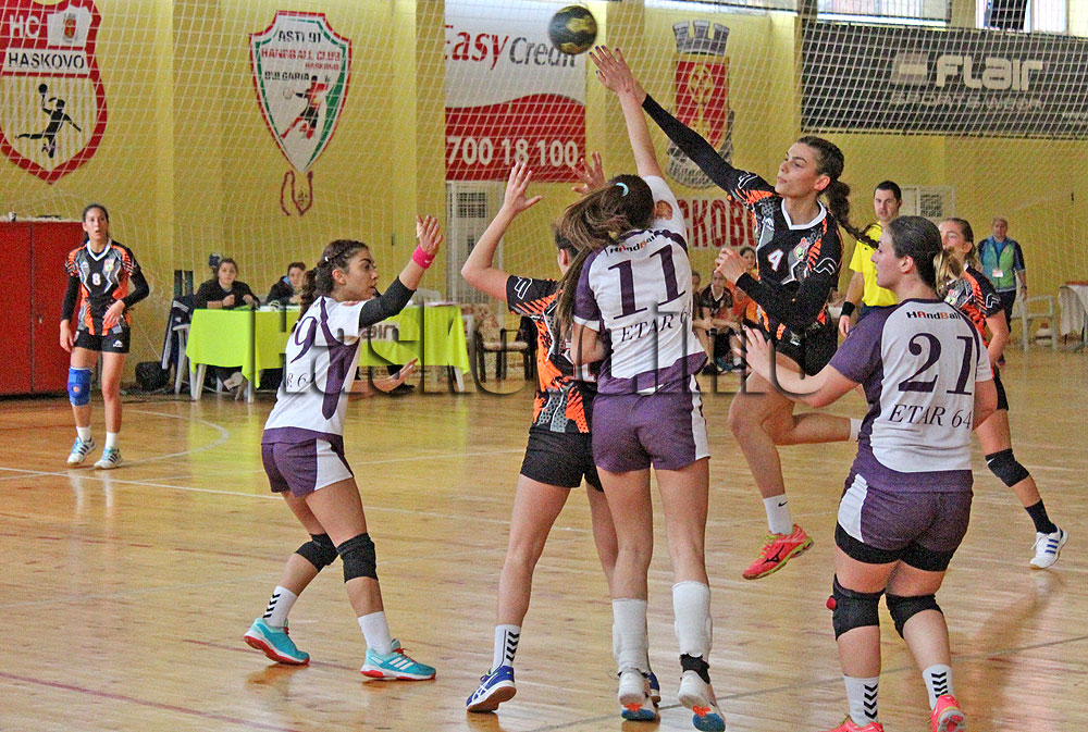 Хасковлийки стартираха в турнира с изключително важния мач срещу „Етър`64“ (Велико Търново), като след равностойна игра изоставаха на полувремето с 12:14. През втората част момичетата на треньора Ирина Миладинова намериха сили за обрат, който задържаха с много воля и заслужено се поздравиха с победа – 33:32. След последния сигнал в срещата настана голяма радост в щаба на хасковлийки и по трибуните.