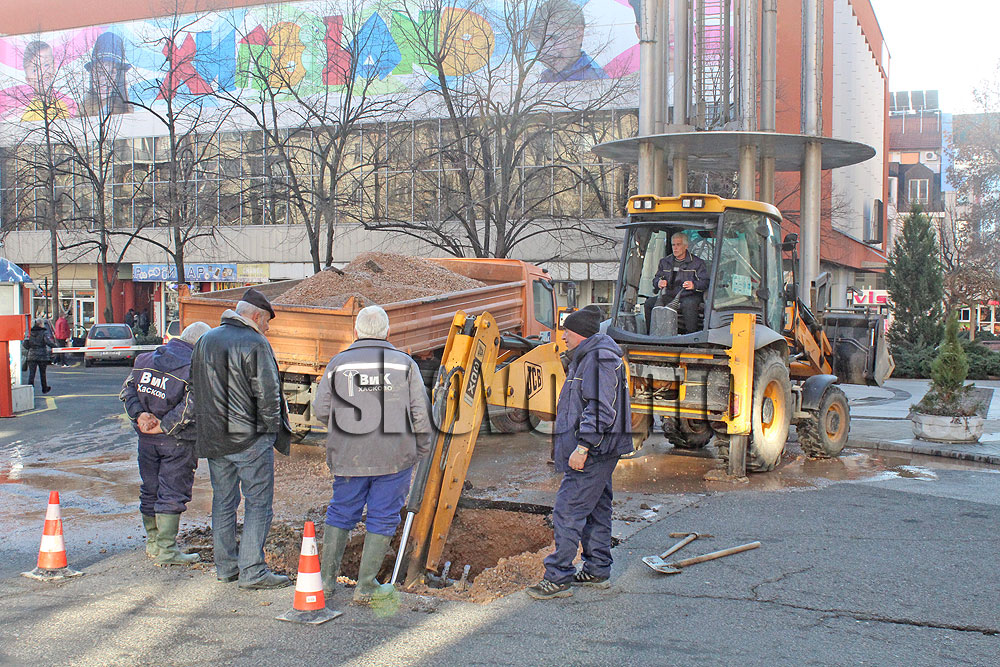 Аварийният екип на водното дружество разкопа улицата пред НАП. Предстои спиране на водата в района на данъчното.