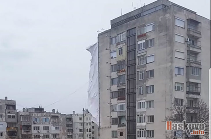 Силният вятър за пореден път скъса паното с лика на Света Богородица от блока на хасковския булевард „Раковски“.