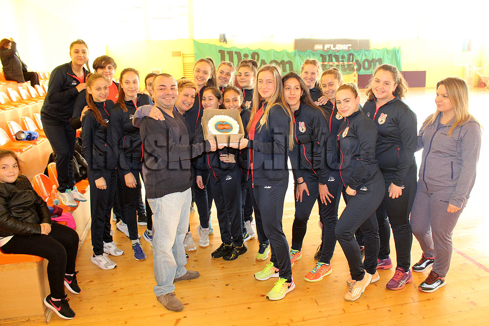 Тортата им бе връчена от Слави Христов, който заедно с други фенове от агитката на „Хасково 2012“, вече ще подкрепят хандбалистките след разпускането на баскетболния тим. В същото време състезателките получиха нова екипировка.