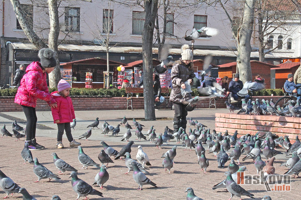 Деца хранят и си играят с гълъбите в центъра на Хасково.