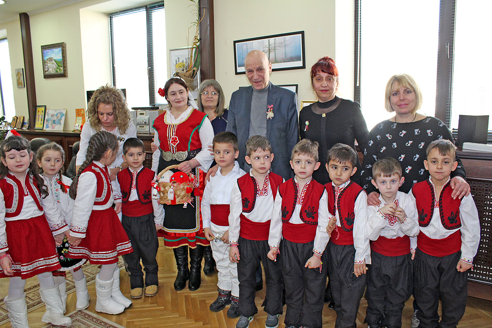 Децата и Баба Марта посетиха и зам.-кмета Велин Балкански, който също им подари мартенички с пожелание за здраве и весели детски игри.