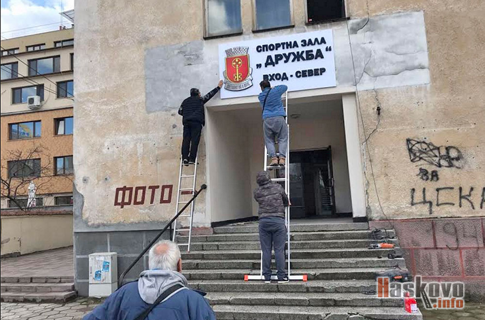 Читатели на Haskovo.info изпратиха снимки на поставянето на табели над входовете на спортна зала „Дружба“ в Хасково.