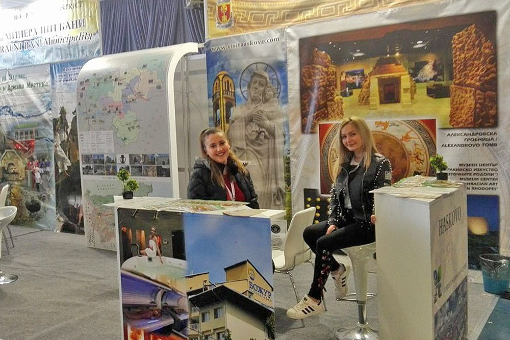 По време на изложбата ученици от Професионална гимназия по туризъм „Александър Паскалев“ се включиха в представянето на община Хасково като туристическа дестинация.