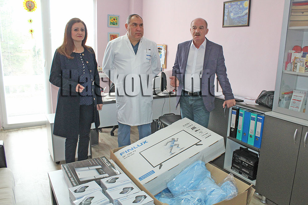 Телевизор, 6 апарата за кръвно, два електронни кантара и 50 чаршафа дариха на хасковската Хемодиализа от парламентарната група на БСП в лицето на депутатите от региона Никола Динков и Виолета Желева.