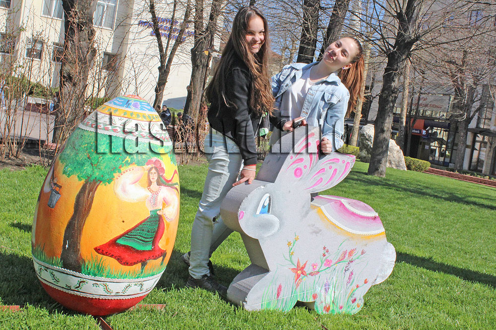 С оправянето на времето от общината извадиха и Великденската украса. По Главната се закачат светещи великденски яйца, а в паркчето между общината и областна администрация са извадени и по-големи яйца, пате и зайче.