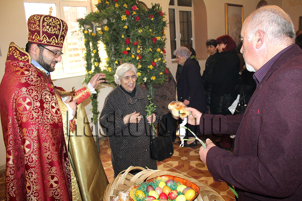 На входа всички получиха от козунаците, курабиите и Великденските яйца, боядисани на Велики четвъртък. Председателят на църковното настоятелство Михран Задиг Карекинян обясни, че арменците празнуват Великден в неделя.