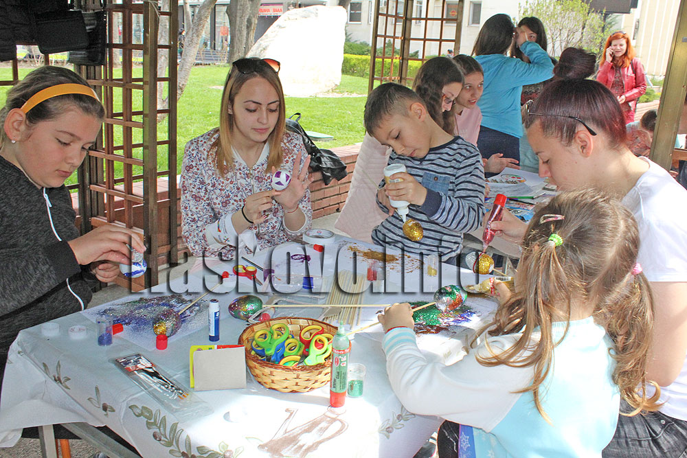 Десетки деца са вкючиха във Великденската работилница „Шарени яйца“ на площад „Общински“ в Хасково на Велики четвъртък.