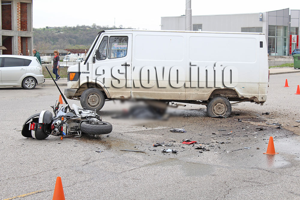 Както Haskovo.info писа, инцидентът стана на Разпети петък на булевард „Съединение“ в района на „Химмаш“ в областния град. От полицията уточняват, че 57-годишният водач на микробуса се е движил в посока жп гарата, предприел е обратен завой от крайната дясна лента. Шофьорът е отнел предимството и е ударен от движещия се в лявата лента с несъобразена скорост мотоциклет Ямаха.