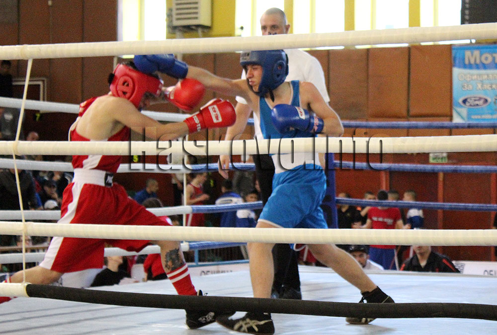 Първите двама хасковлии, които се качиха на ринга записаха победи. Апостол Варов (48 кг.) отказа своя съперник от Перник, а Дениз Илиянов (42 кг.) спечели над софиянец с 3:0. По-късно излиза фаворитът за титлата при 63-килограмовите Емирджан Мехмед.