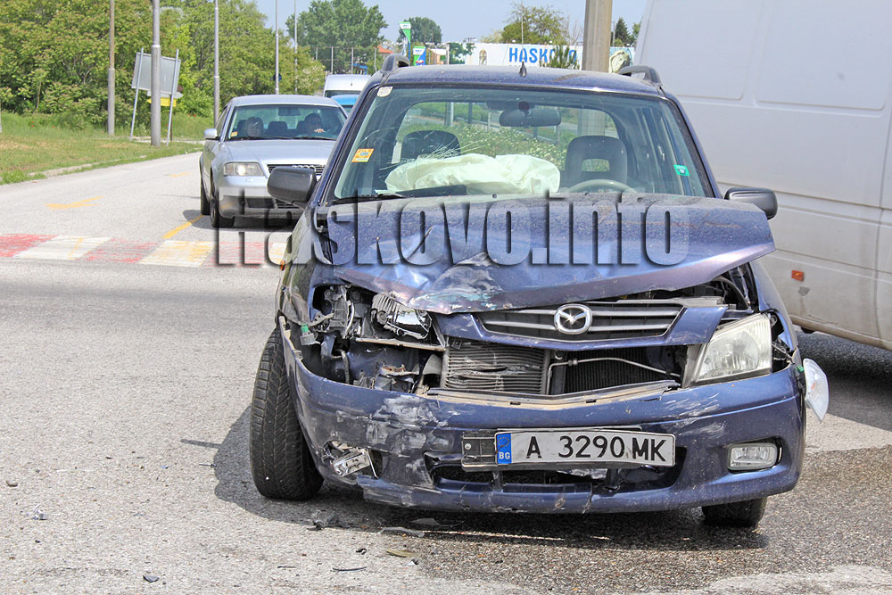 По обяд там се удариха Мазда с бургаска регистрация и хасковски Сеат. От полицията съобщиха за Haskovo.info, че Маздата е отнела предимството на Сеата и така двете коли са се ударили. Повече щети има по бургаската кола, която е с разбита предница.