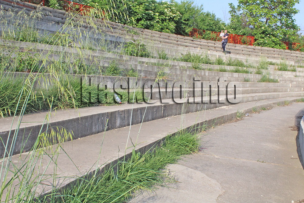 Високи треви са избуяли основно по северната трибуна на стадион „Хасково“ на Ямача.