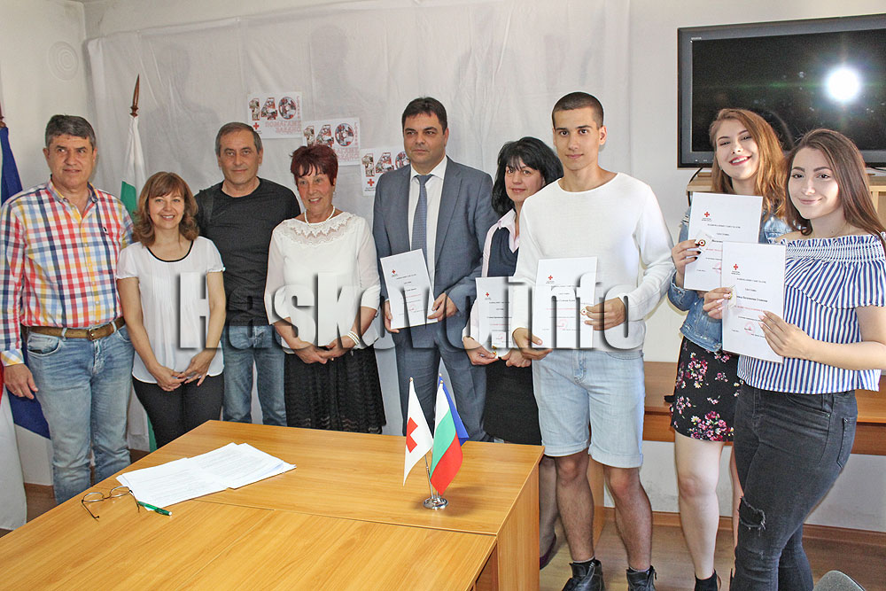 Званието Млад отличник на БЧК заслужиха: Деница Стоянова, Гергана Делитонева, Росен Кузев и Мартин Иванов.