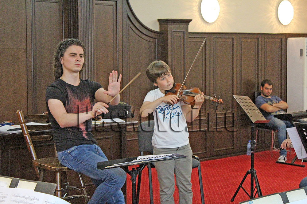 Днес всички репетираха в ритуалната зала при Младежкия център. В програмата са произведения на Корели, Сарасате, Масне, Бастън, Де Файя, Танев.
