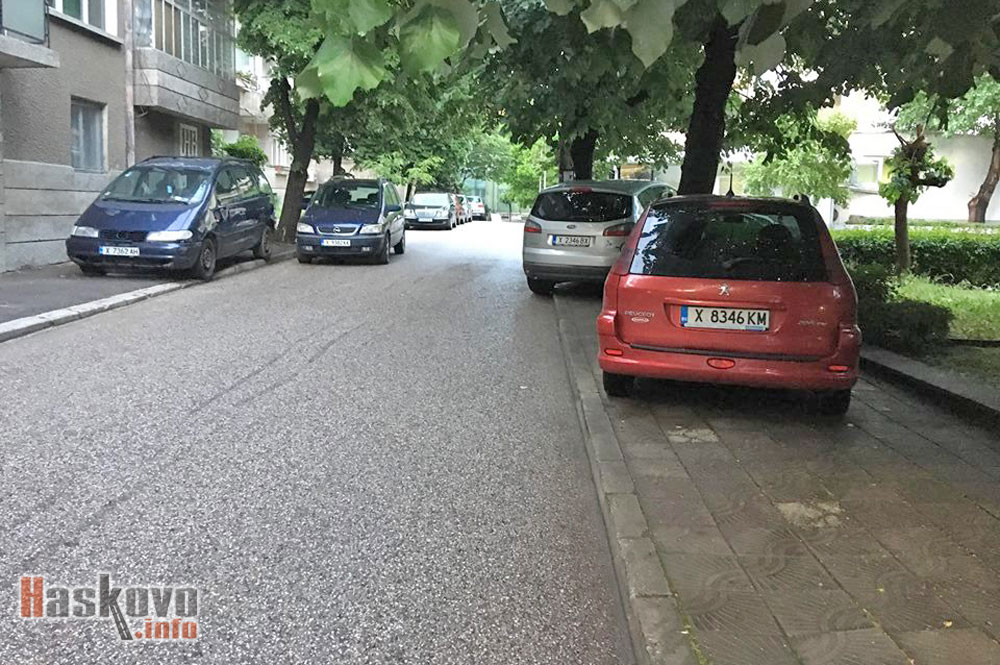 За неправилно паркирани коли на тротоара до сградата на НОИ в Хасково сигнализираха читатели на Haskovo.info.