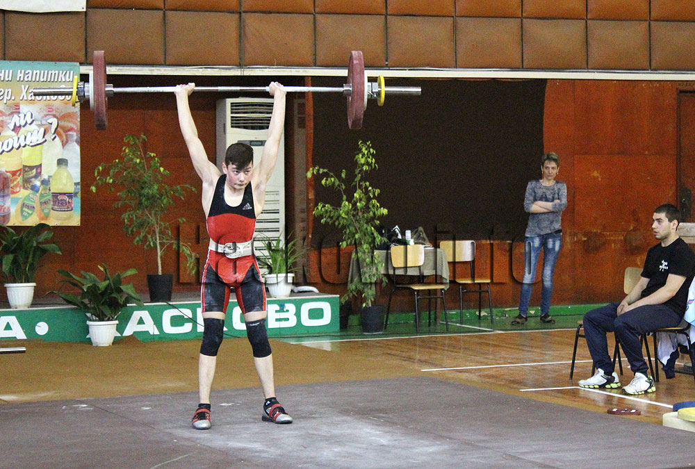 В първия състезателен ден под тежестите застанаха кадетите до 15 г. Тук Хасково представя Бюлент Юриев в категория 56 кг.