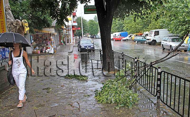 Над Хасково за няколко минути се изляха 4 литра дъжд на квадратен метър, придружен с вятър и гръмотевична буря.