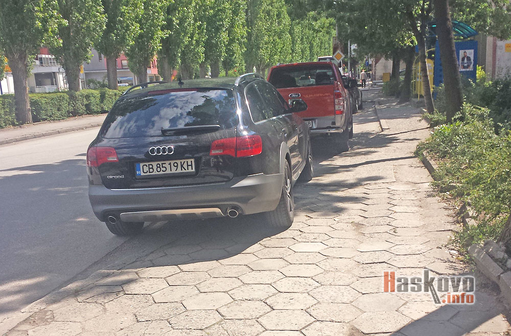 За неправилно паркиране по тротоара и автобусната спирка пред УНСС в Хасково сигнализираха читатели на Haskovo.info.