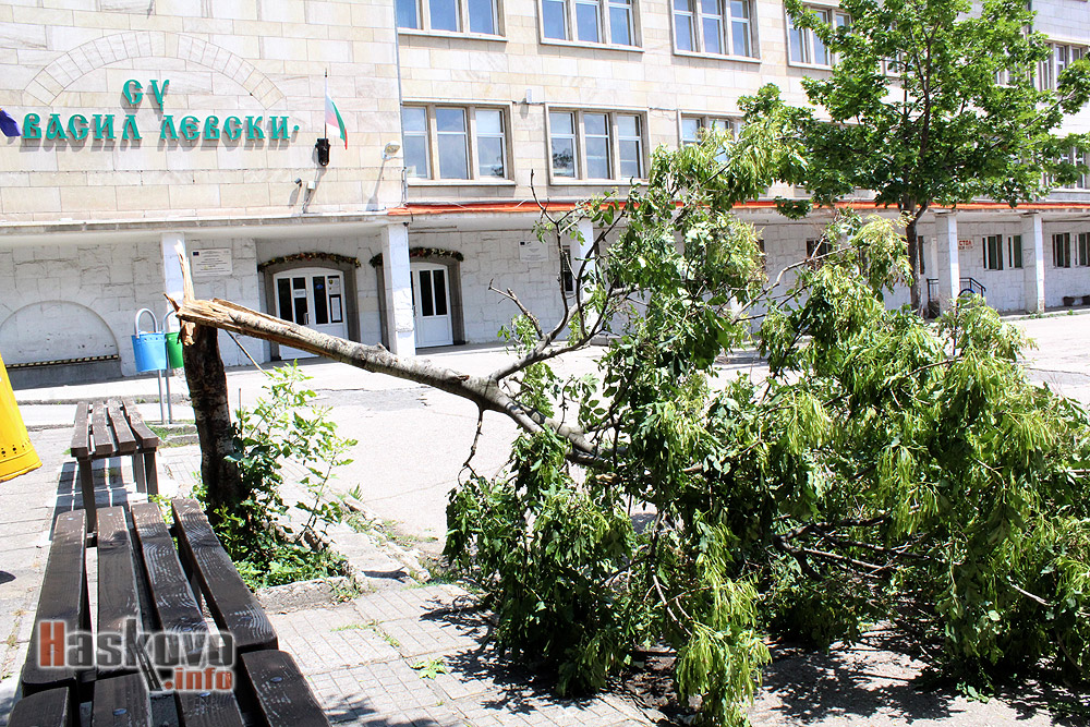 Дърво е прекършено в двора на хасковското училище "Васил Левски".
