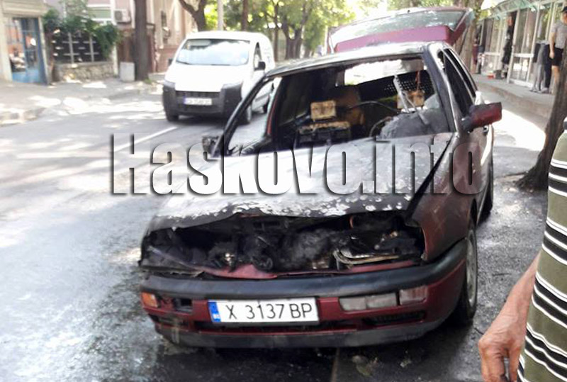 Колата е пламнала в района на пазара за дрехи. Изгорял е двигателят и купето на автомобила.