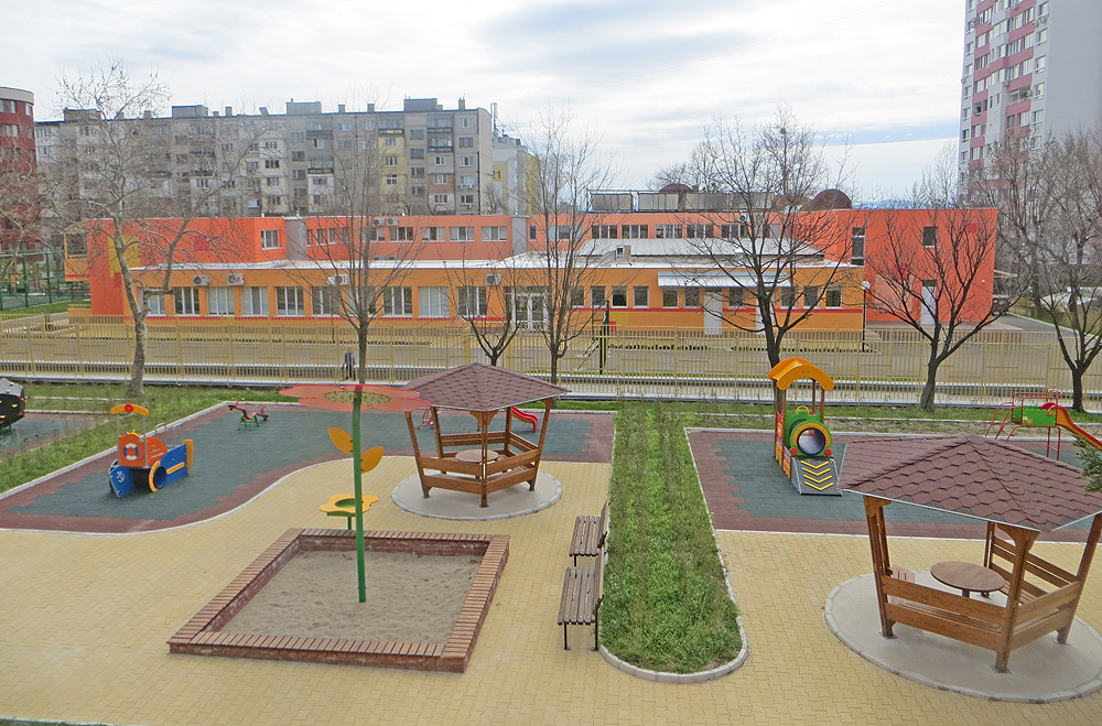Дворните пространства също са основно ремонтирани. Подменени са всички тротоарни плочки и бордюри, изградени са нови алеи, подпорни стени и рампи. Ремонтирани са спортните игрища в училищата и са поставени изцяло нови детски съоръжения в детските градини.