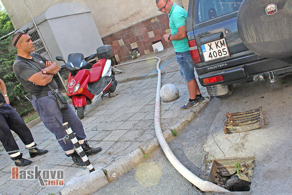 От пожарната отводняват мазетата на хасковската спортна зала „Дружба“, които са се напълнили с вода при последните дъждове.