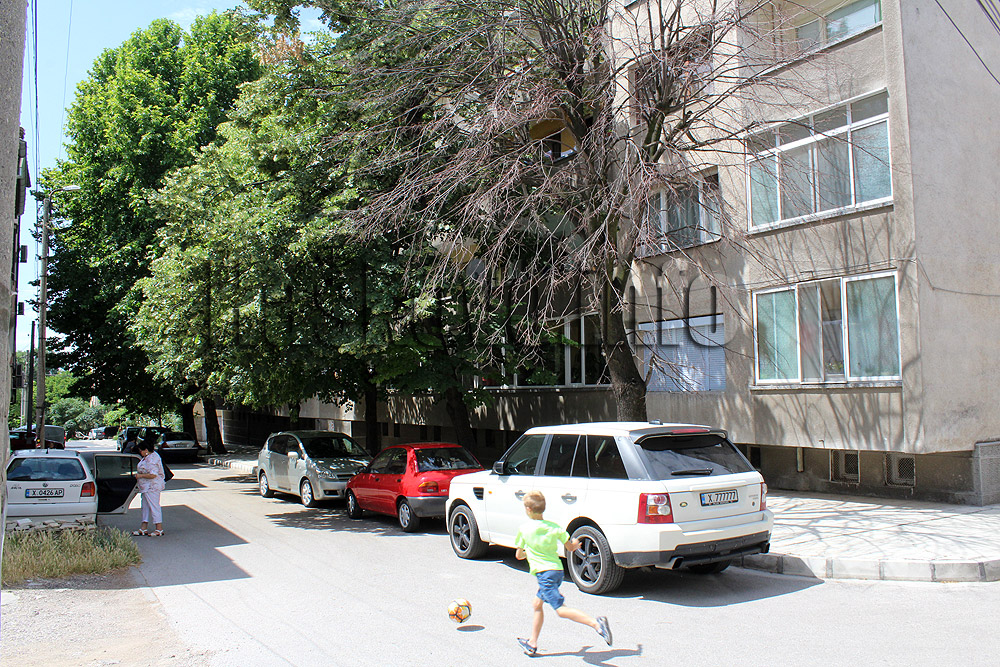 Тази е учертала цялата улица и я е превърнала в лична детска площадка. Да я натиснат да си плаща наем.нахалница дърта,проста.