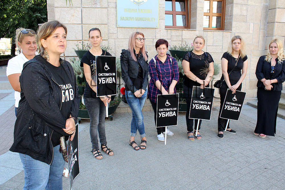 Майки на деца с увреждания протестират в Хасково