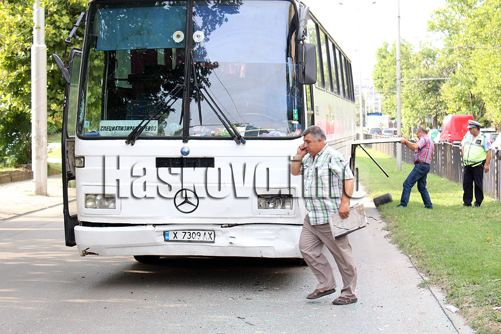 Автобус, лек автомобил Ауди и тролей се удариха на пешеходна пътека на булевард „Васил Левски“ в Хасково.